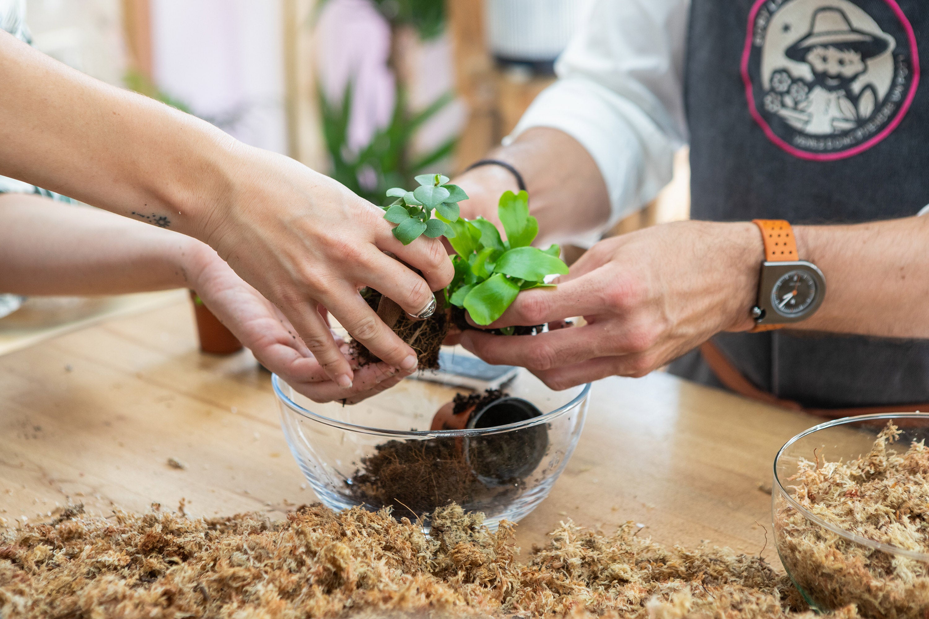 Enfilez un tablier et plongez dans nos ateliers ! Créez votre composition végétale unique (terrariums, cadres végétaux...) en combinant plantes, mousses, et pierres décoratives. Repartez avec une création qui vous ressemble, accompagné des conseils pour la chouchouter pour les années à venir !