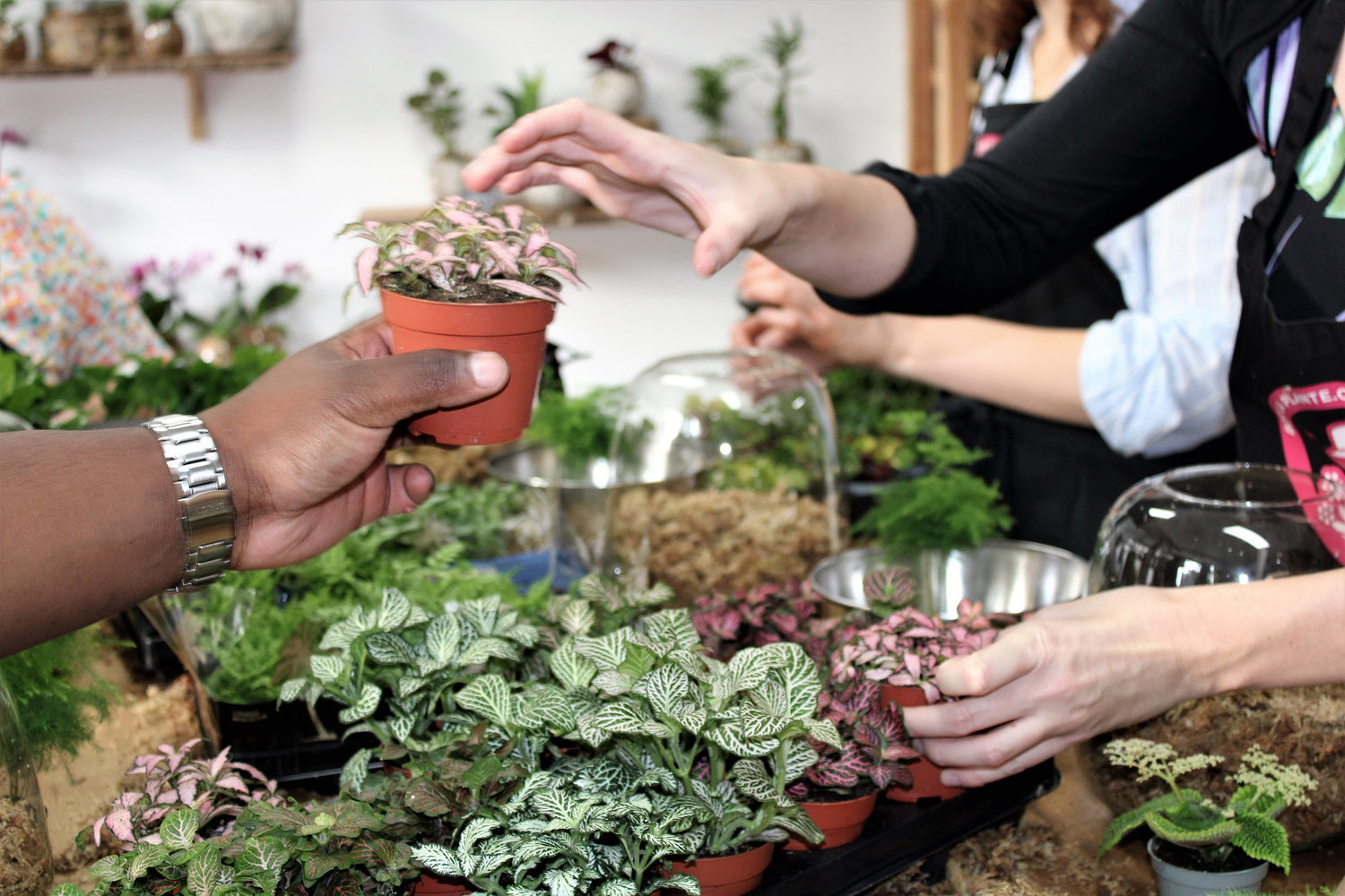 Mais surtout ! Venez vivre l'expérience de faire vous-même vos compositions végétales sur notre "beau" plan de travail lors de nos ateliers, dans la joie et la bonne humeur avec notre équipe de choc ! (Smain, Benjamin, Roxane et Martin)